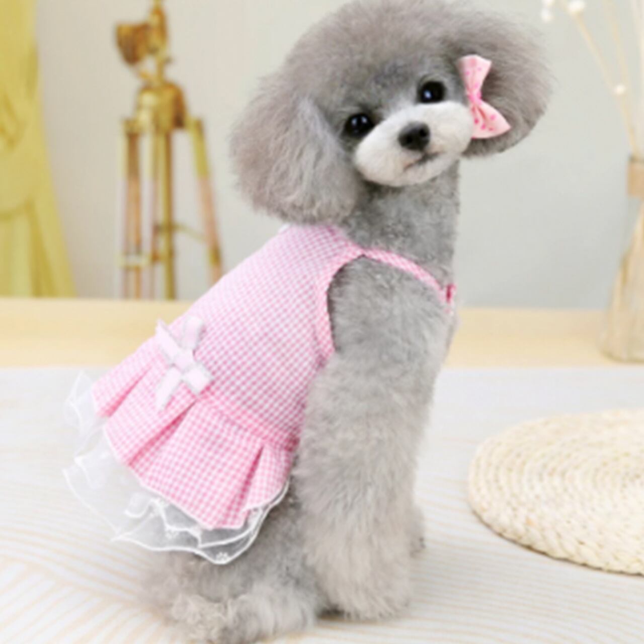 【春夏 XS~XL 3色】チェック柄 レース ワンピース/犬服 犬の服 ドッグウェア ペットウェア ペット 洋服 (SS025) | 【monmon(モンモン)】|犬服・ドッグウェア・ペット用品の通販
